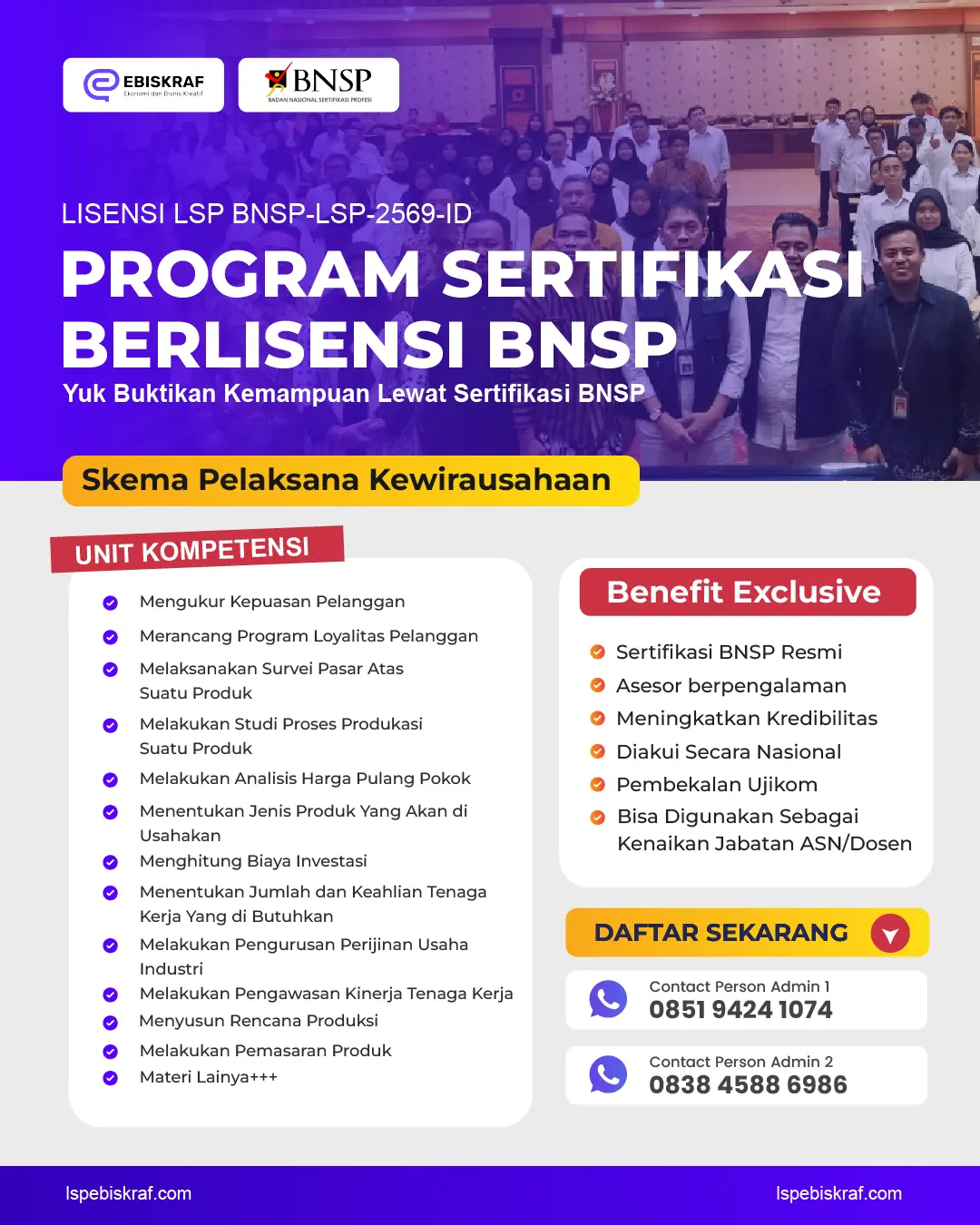 Pelaksana Kewirausahaan: Sertifikasi untuk pengusaha yang ingin meningkatkan keahlian dan pengetahuan dalam berwirausaha.