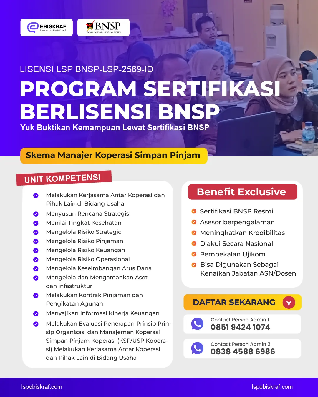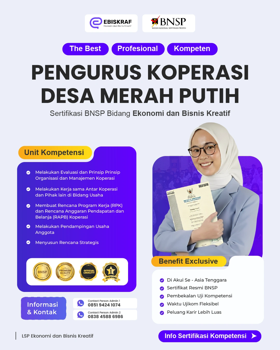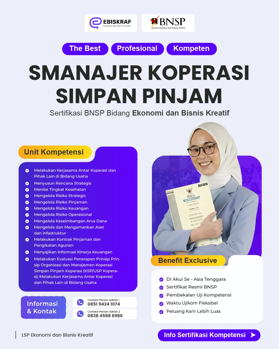 Manajer Koperasi Simpan Pinjam: Sertifikasi bagi individu yang terlibat dalam kegiatan simpan pinjam, termasuk pengelolaan dan administrasi.