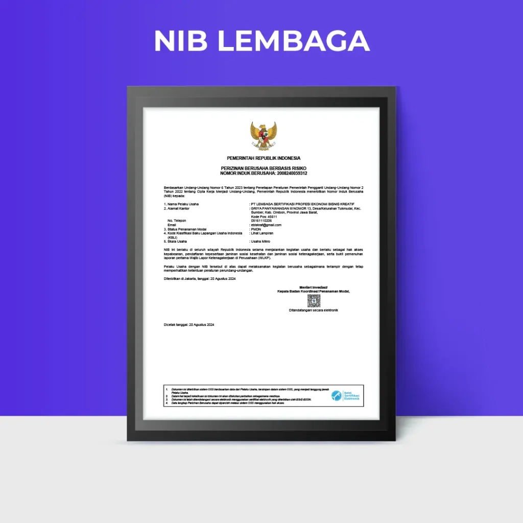 Lembaga sertifikasi berlisensi BNSP yang berkomitmen memastikan kompetensi kerja sesuai standar nasional.