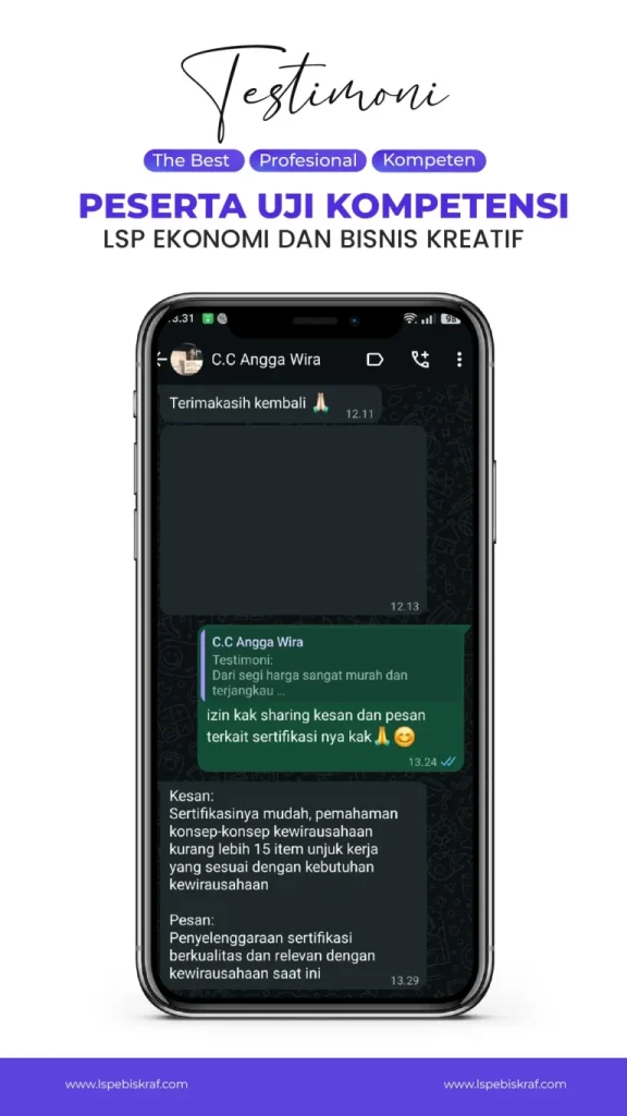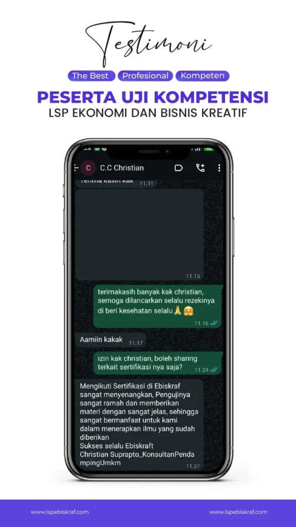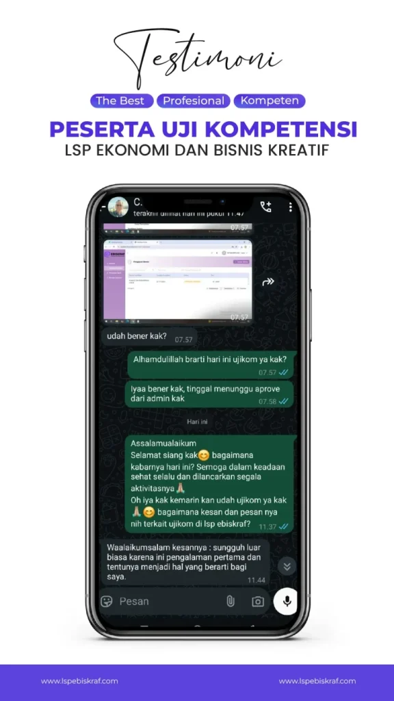 Insight, carousel edukatif, dan dokumentasi kegiatan sertifikasi LSP Ebiskraf untuk membangun personal & professional branding
